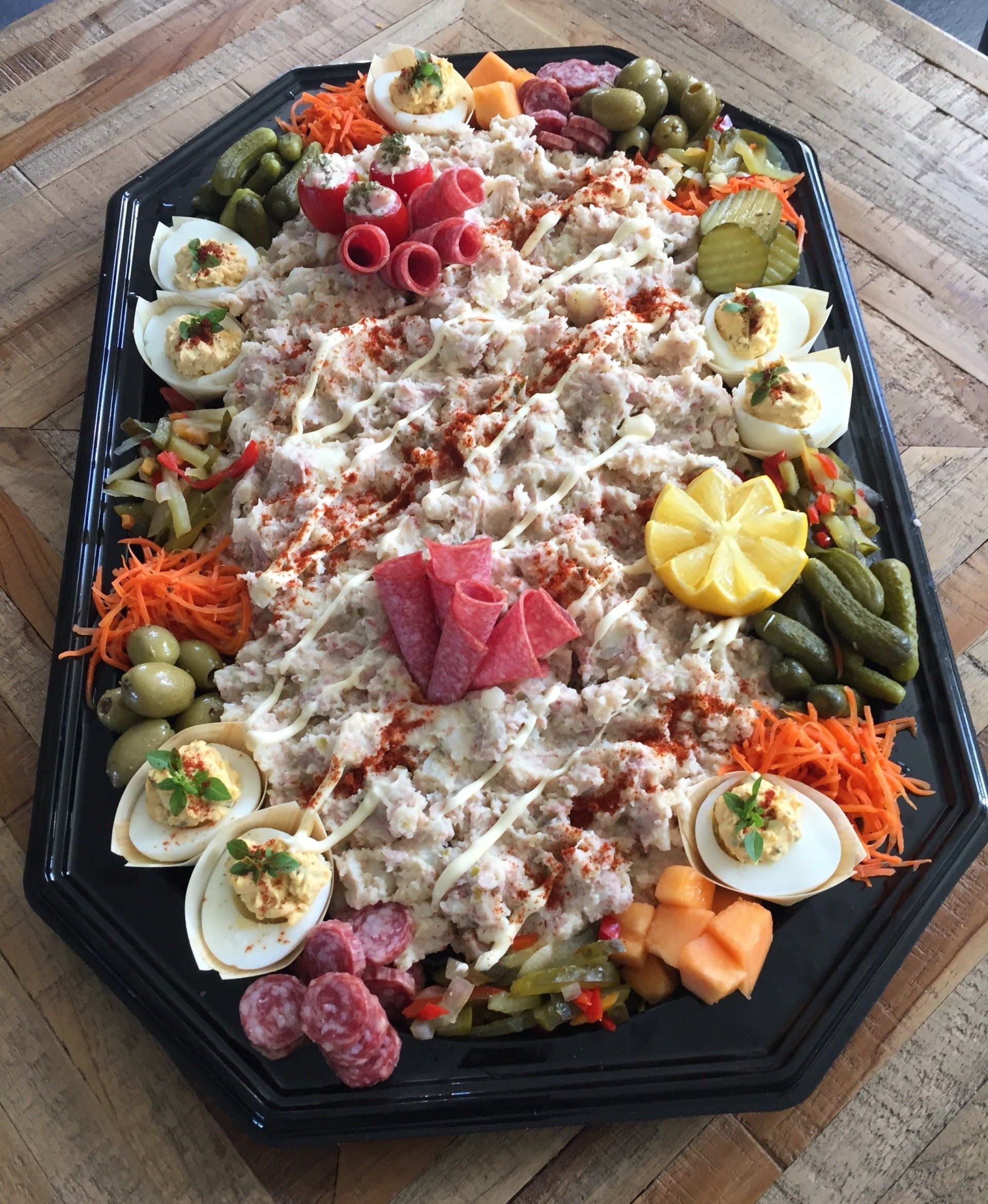 Bekijk onze overheerlijke en kant-en-klare hapjesschalen of salades.