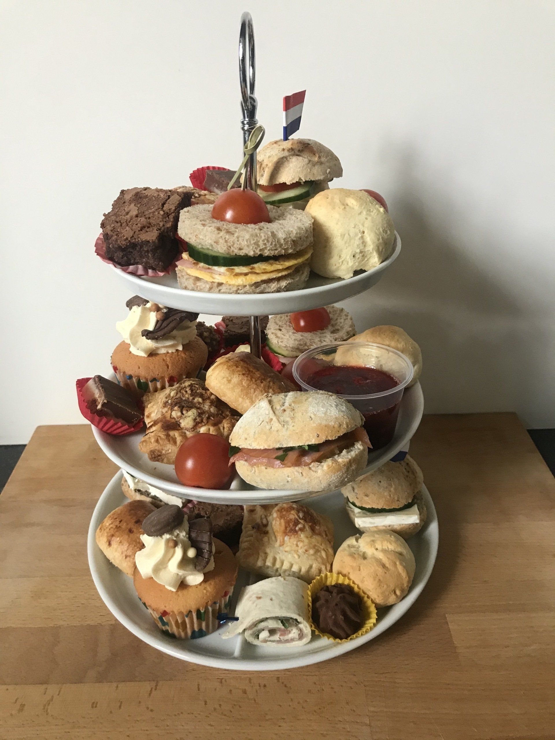 Lekkere High Tea met een variëteit aan zoete en hartige hapjes